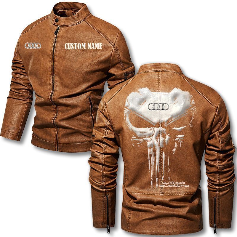 Custom Name Punisher Skull Audi-logo Motorcycle Leather Jacket