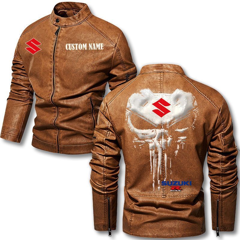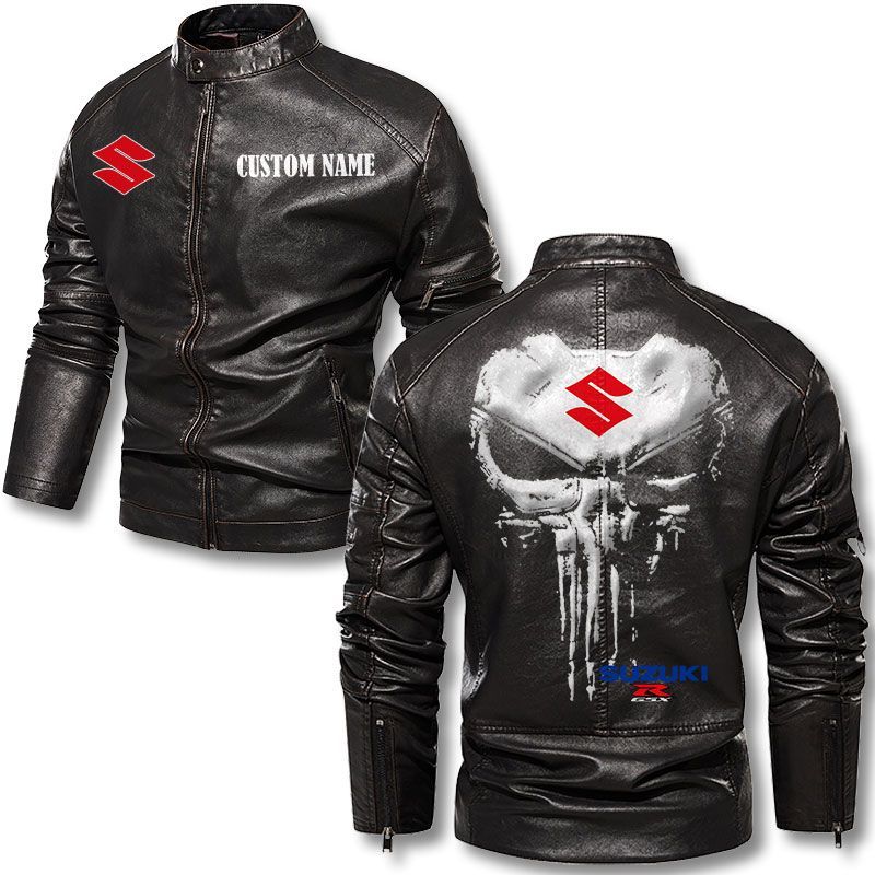 Custom Name Punisher Skull Gsx Motorcycle Leather Jacket