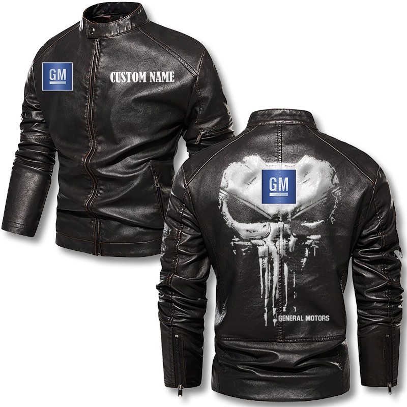 Custom Name Punisher Skull General Motors Motorcycle Leather Jacket
