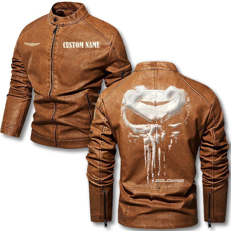 Custom Name Punisher Skull Goldwing Motorcycle Leather Jacket
