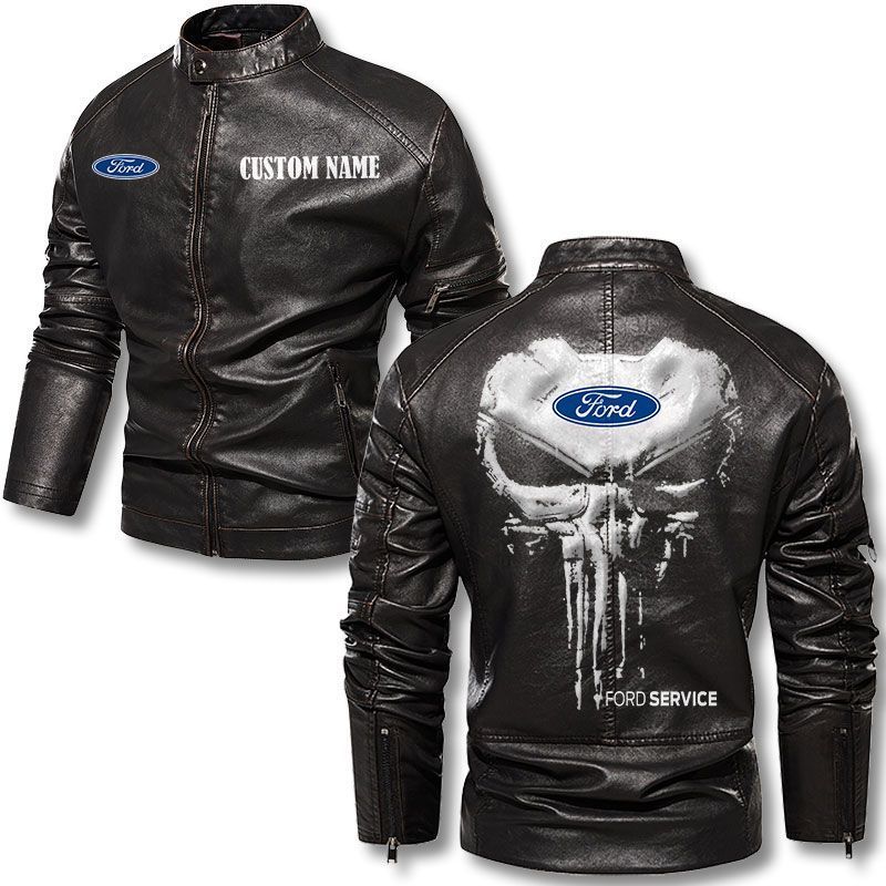 Custom Name Punisher Skull Ford Motor Company Motorcycle Leather Jacket