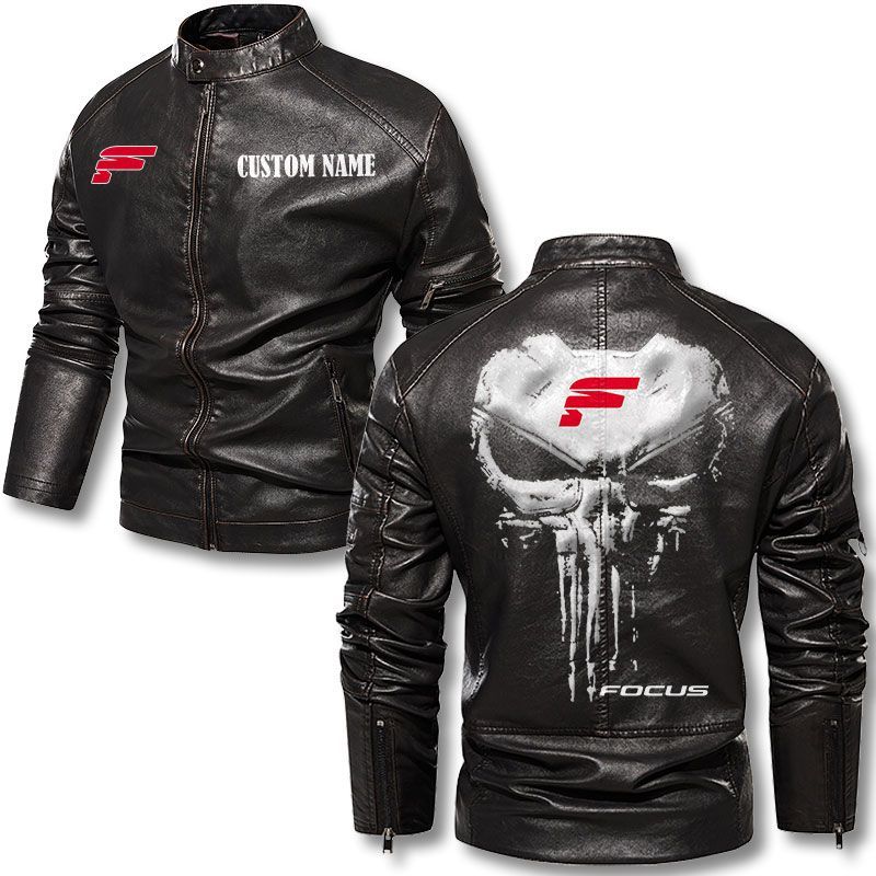 Custom Name Punisher Skull FOCUS Bikes Motorcycle Leather Jacket