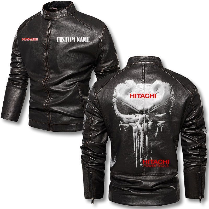 Custom Name Punisher Skull Hitachi Motorcycle Leather Jacket
