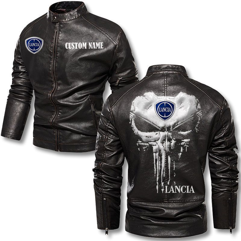 Custom Name Punisher Skull Lancia Motorcycle Leather Jacket