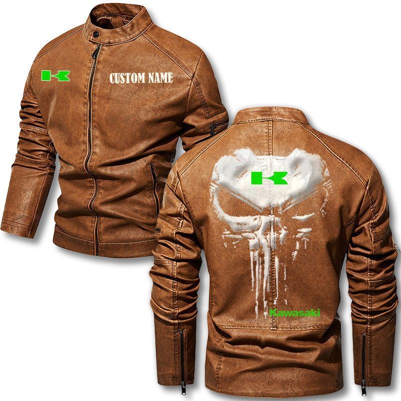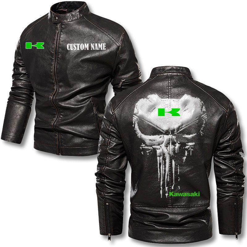 Custom Name Punisher Skull Kawasaki Motorcycle Leather Jacket