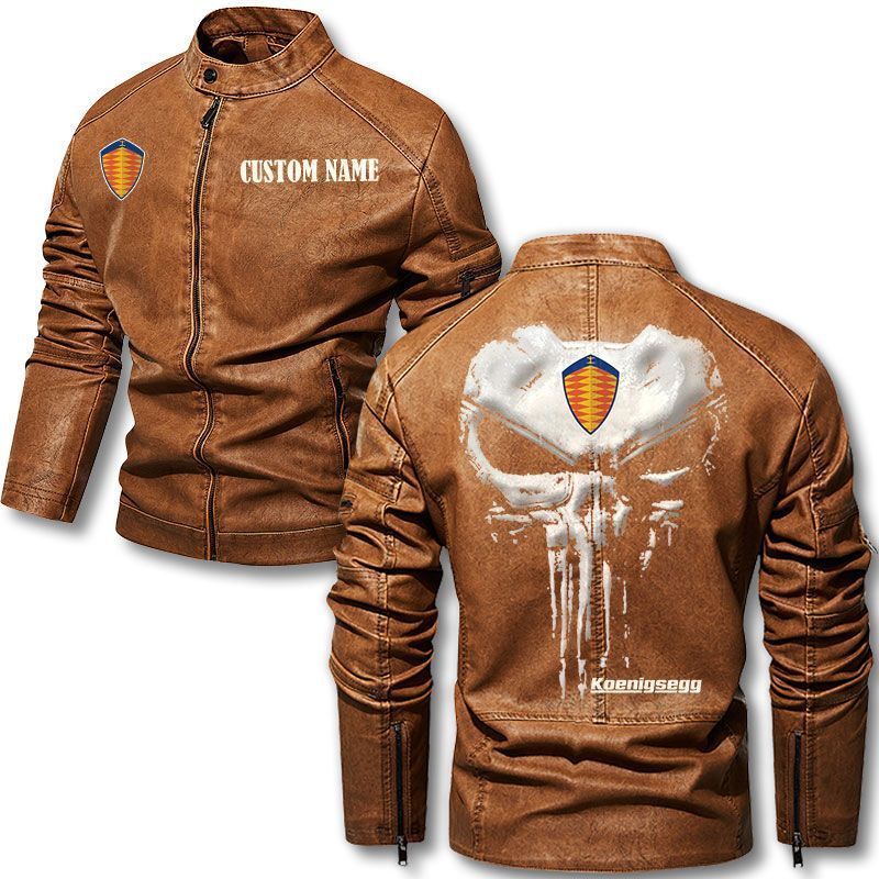 Custom Name Punisher Skull Koenigsegg Motorcycle Leather Jacket