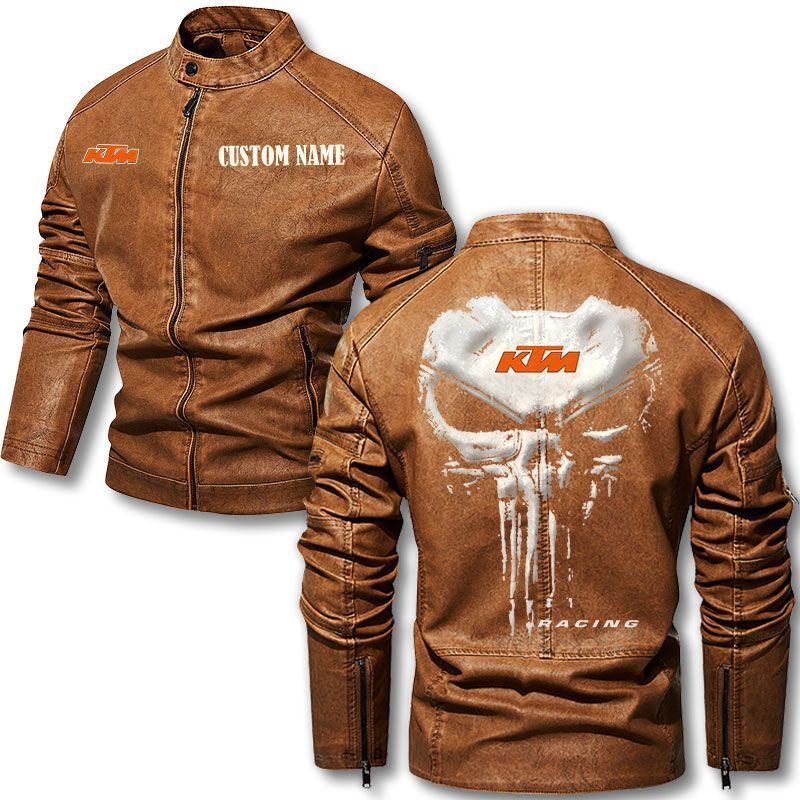 Custom Name Punisher Skull KTM Motorcycle Leather Jacket
