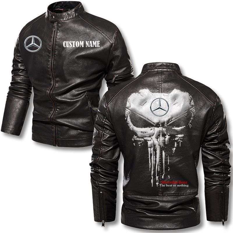 Custom Name Punisher Skull Mercedes Benz Motorcycle Leather Jacket