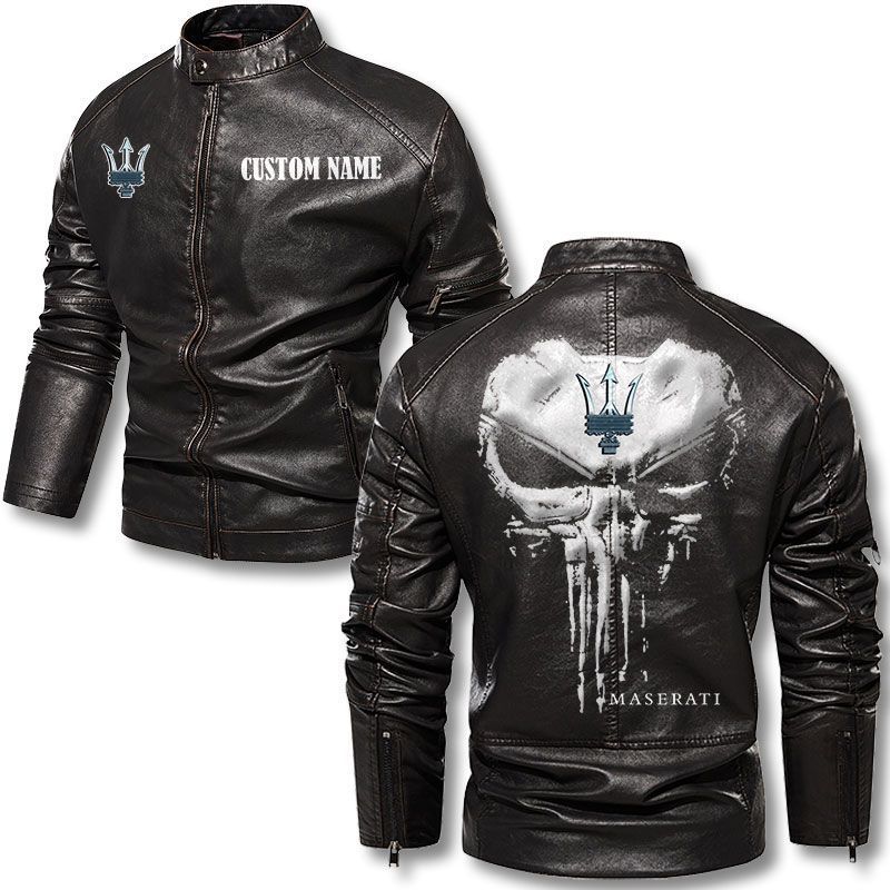 Custom Name Punisher Skull Maserati Motorcycle Leather Jacket