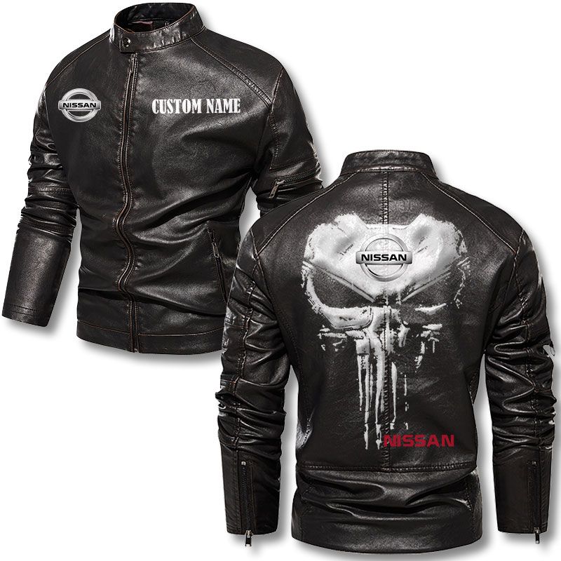 Custom Name Punisher Skull Nissan Motorcycle Leather Jacket