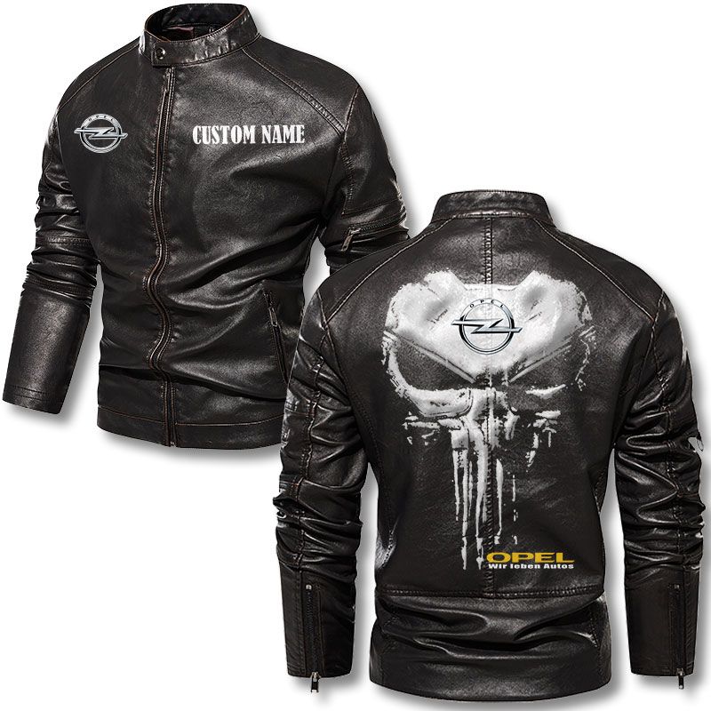 Custom Name Punisher Skull Opel Motorcycle Leather Jacket