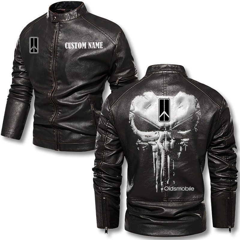 Custom Name Punisher Skull Oldsmobile Motorcycle Leather Jacket