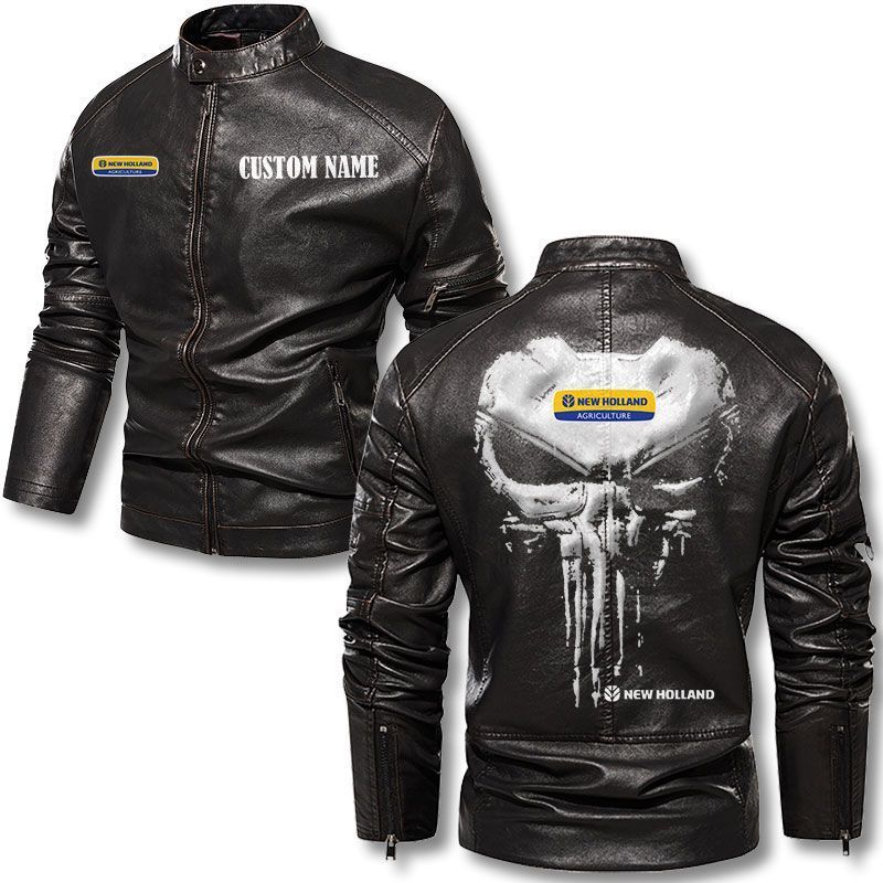 Custom Name Punisher Skull New Holland Agriculture Motorcycle Leather Jacket