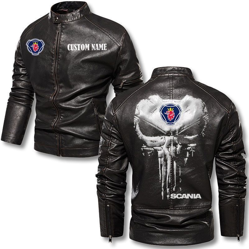 Custom Name Punisher Skull Scania Motorcycle Leather Jacket