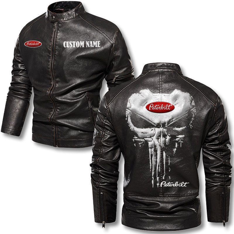 Custom Name Punisher Skull Peterbilt Motorcycle Leather Jacket
