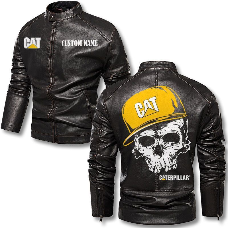 Custom Name Skull Design Caterpillar Inc Motorcycle Leather Jacket