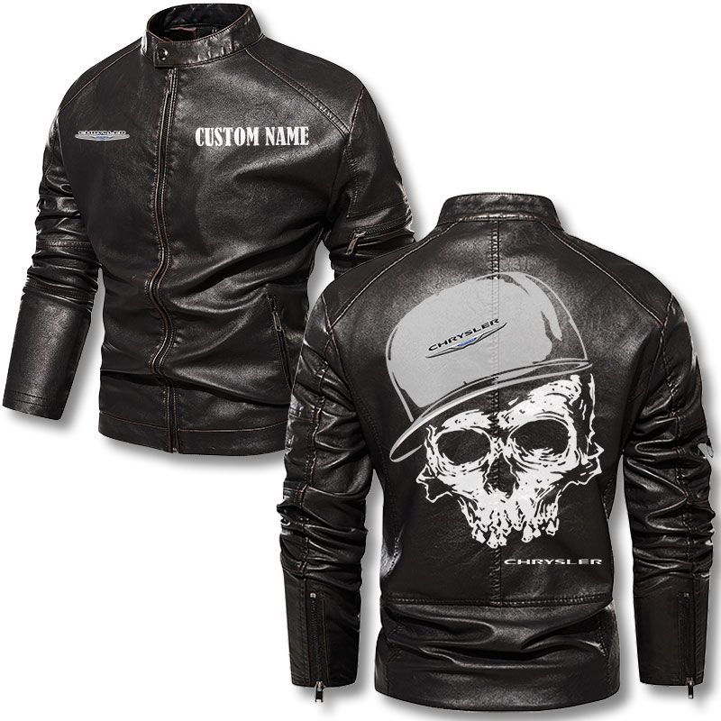 Custom Name Skull Design Chrysler Motorcycle Leather Jacket