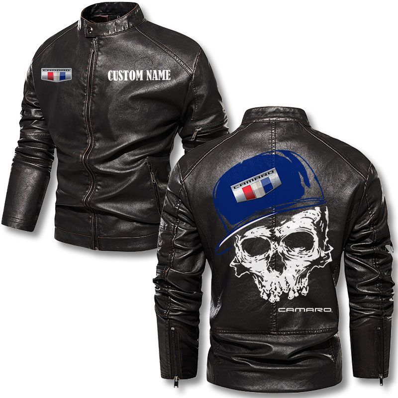 Custom Name Skull Design Chevrolet Camaro Motorcycle Leather Jacket