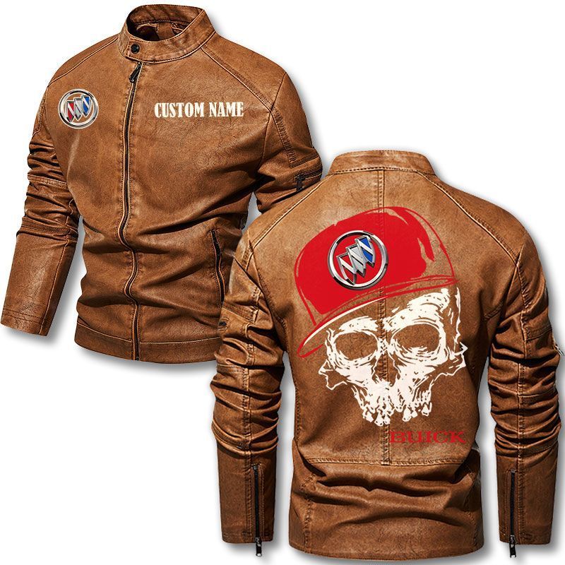 Custom Name Skull Design Buick Motorcycle Leather Jacket