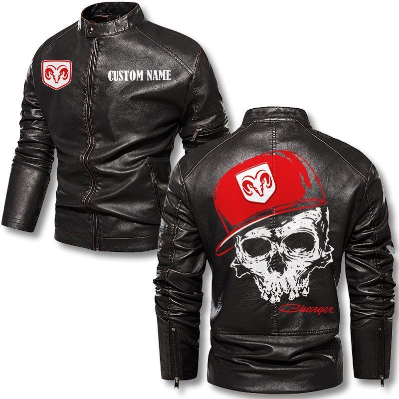 Custom Name Skull Design Dodge Motorcycle Leather Jacket
