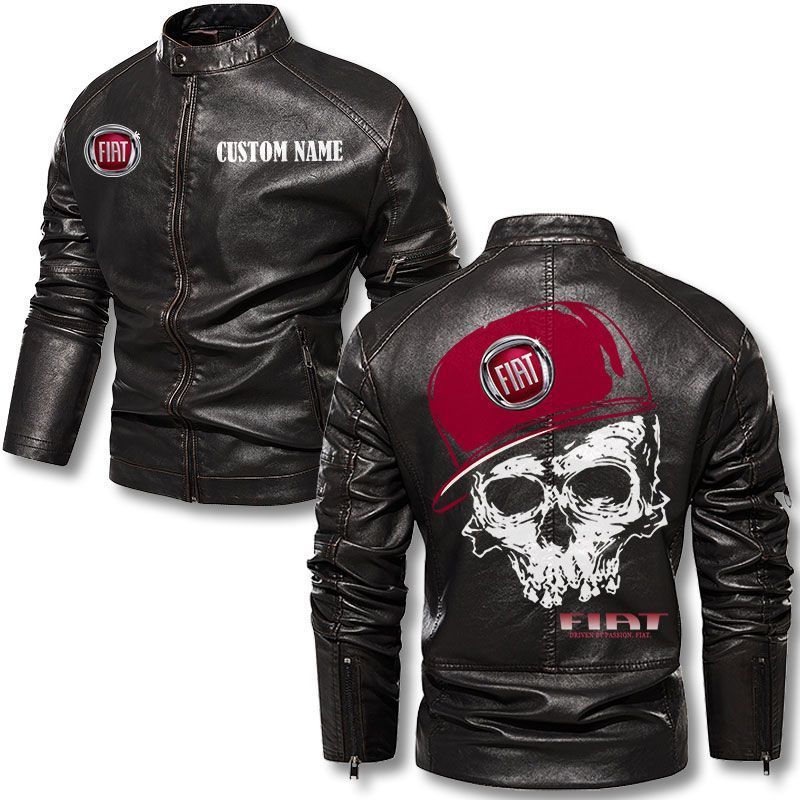 Custom Name Skull Design Fiat Motorcycle Leather Jacket