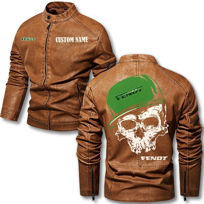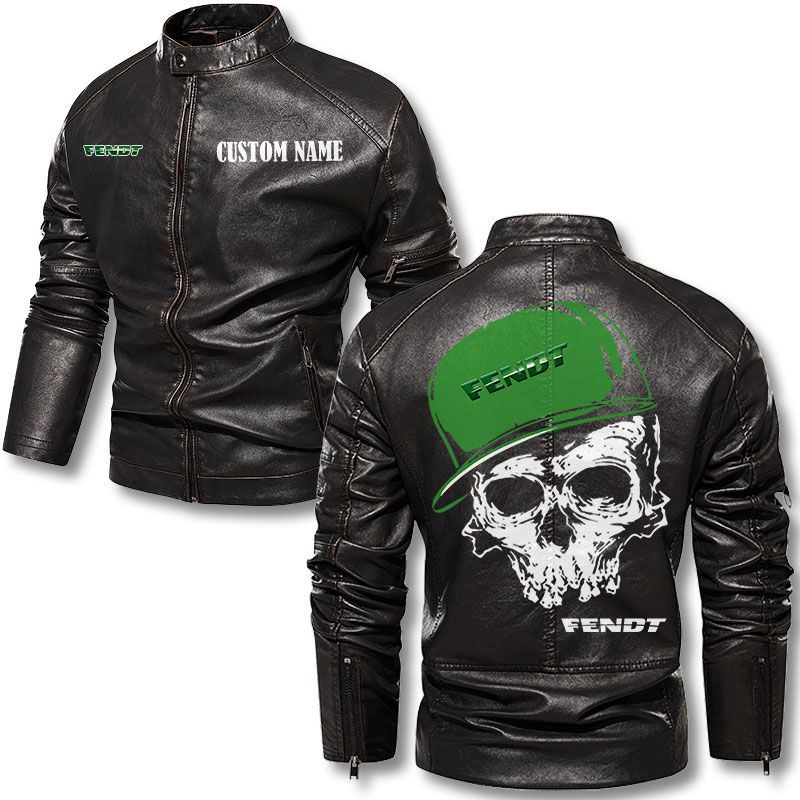 Custom Name Skull Design Fendt Motorcycle Leather Jacket