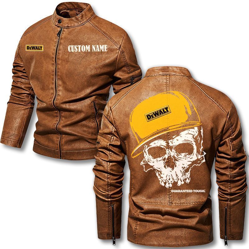 Custom Name Skull Design DeWalt Motorcycle Leather Jacket