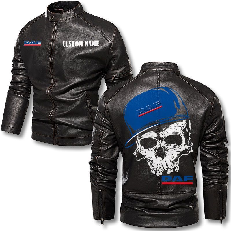 Custom Name Skull Design Daf Motorcycle Leather Jacket