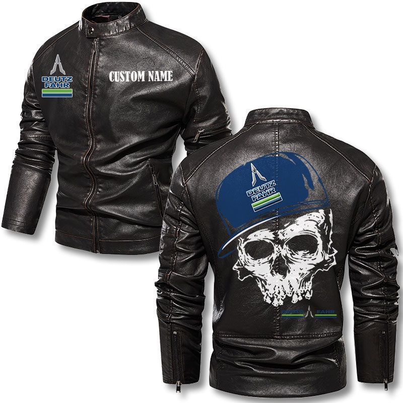 Custom Name Skull Design Deutz Fahr Motorcycle Leather Jacket