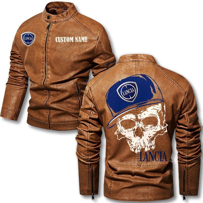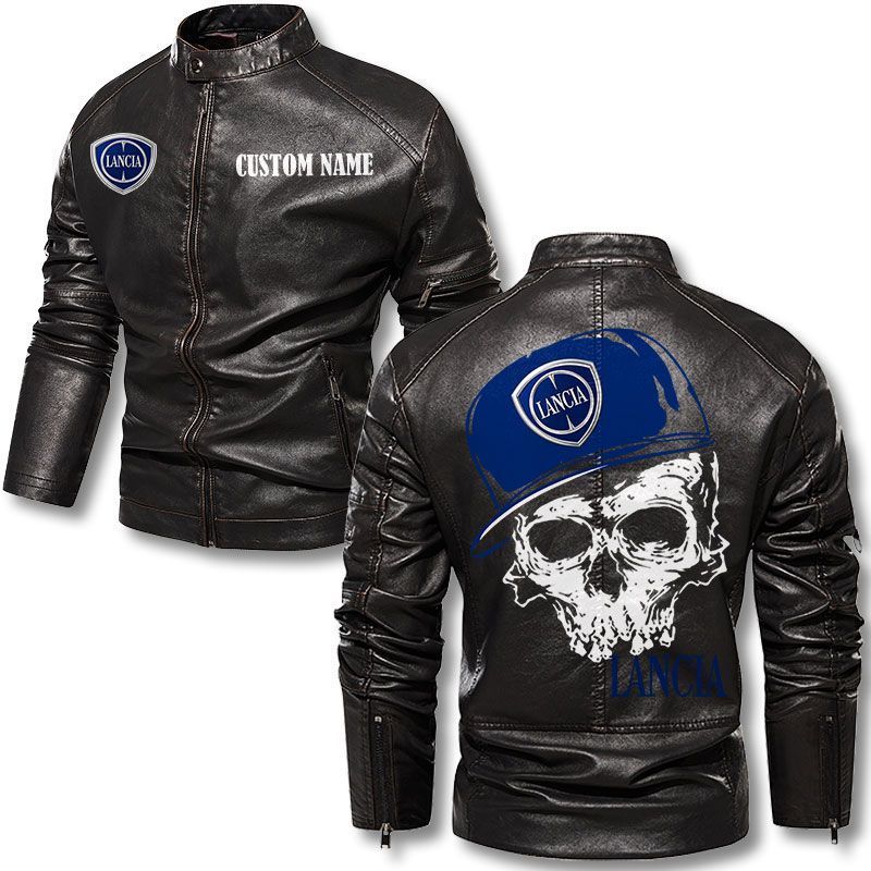 Custom Name Skull Design Lancia Motorcycle Leather Jacket