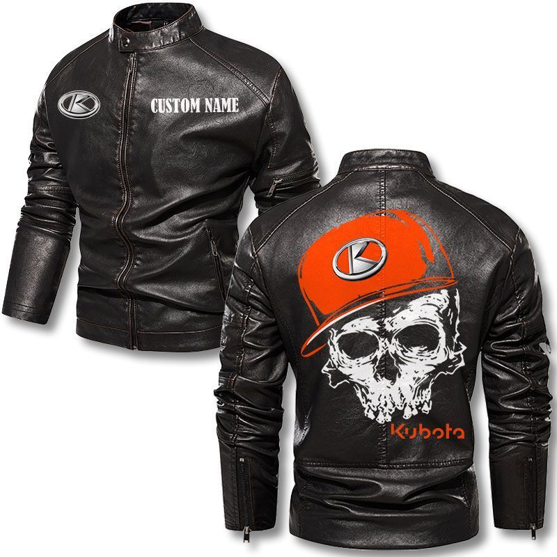 Custom Name Skull Design Kubota Motorcycle Leather Jacket