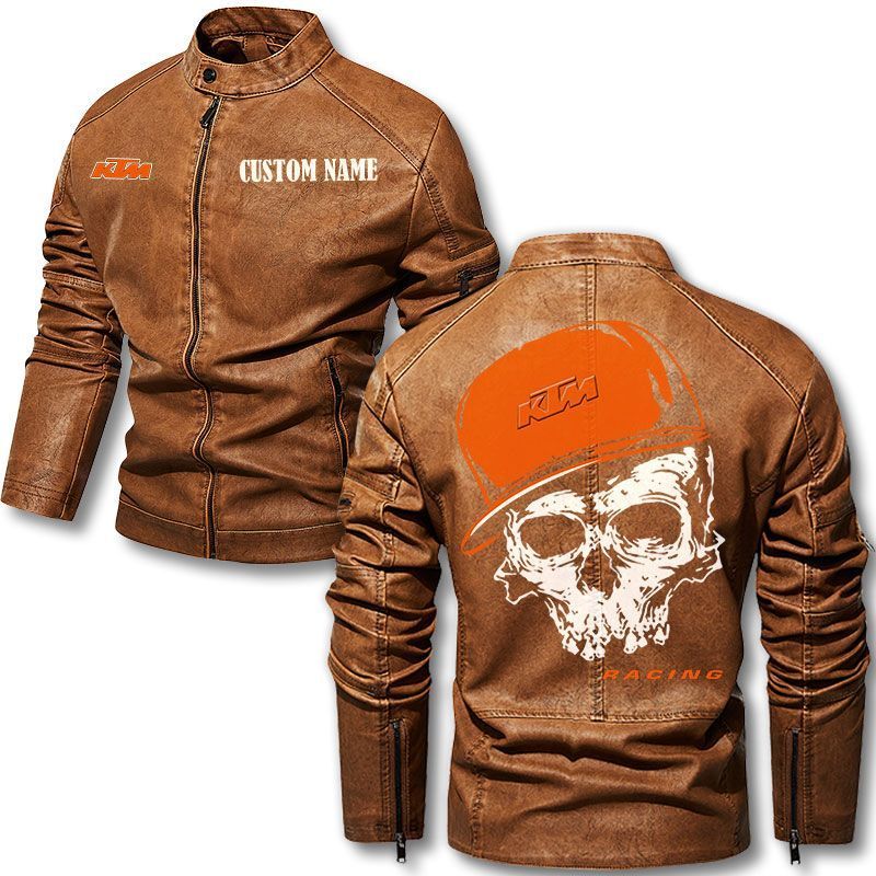 Custom Name Skull Design KTM Motorcycle Leather Jacket
