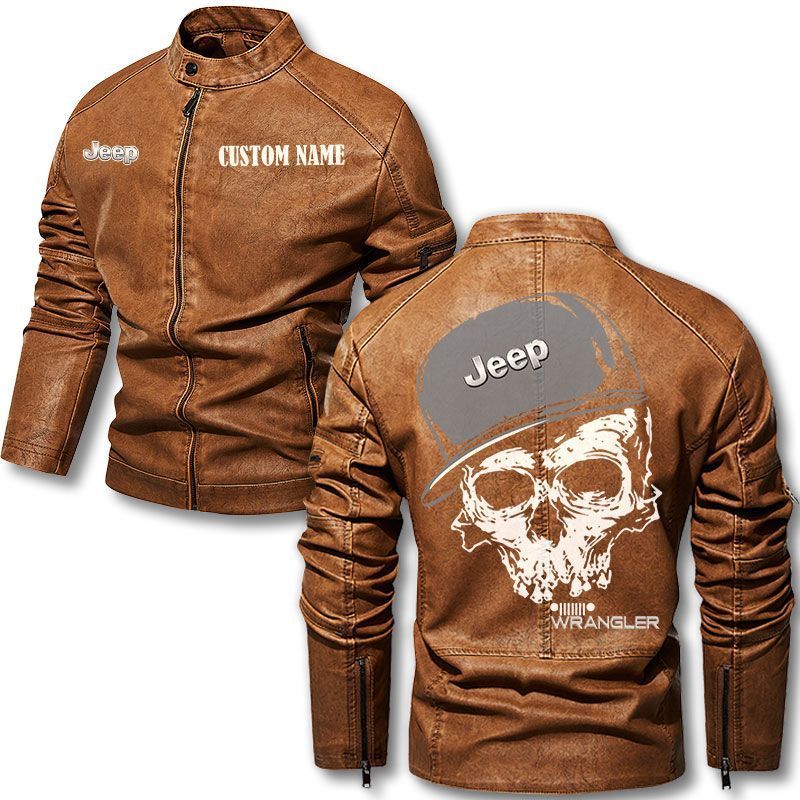 Custom Name Skull Design Jeep wrangler Motorcycle Leather Jacket