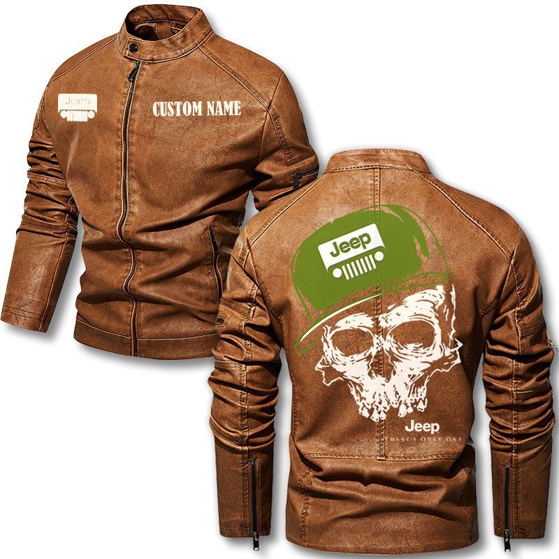 Custom Name Skull Design Jeep Motorcycle Leather Jacket