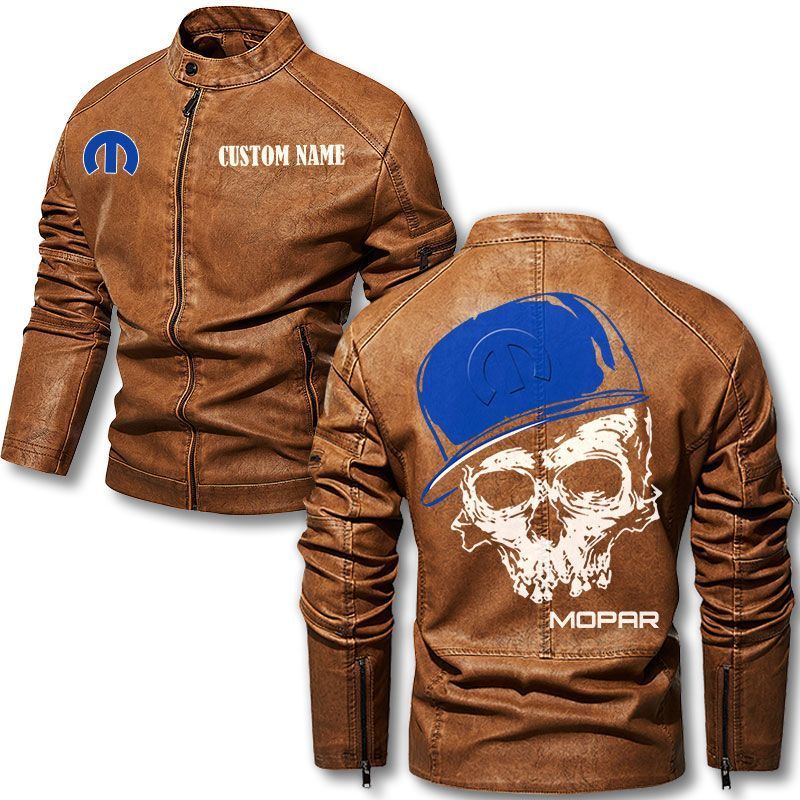Custom Name Skull Design Mopar Motorcycle Leather Jacket