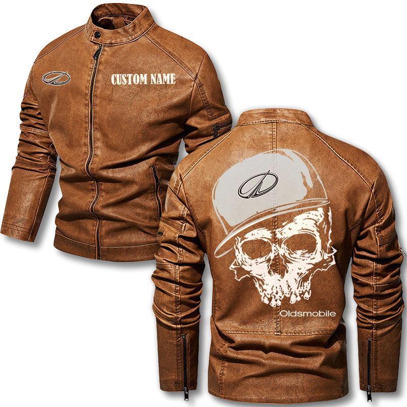Custom Name Skull Design Oldsmobile Motorcycle Leather Jacket