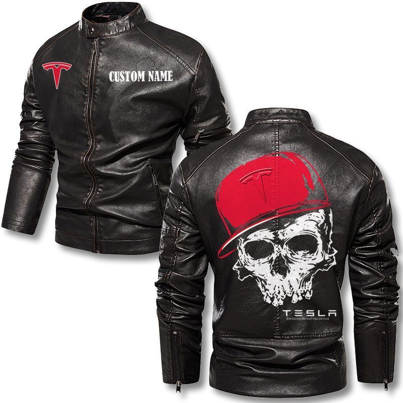 Custom Name Skull Design Tesla Motors Motorcycle Leather Jacket