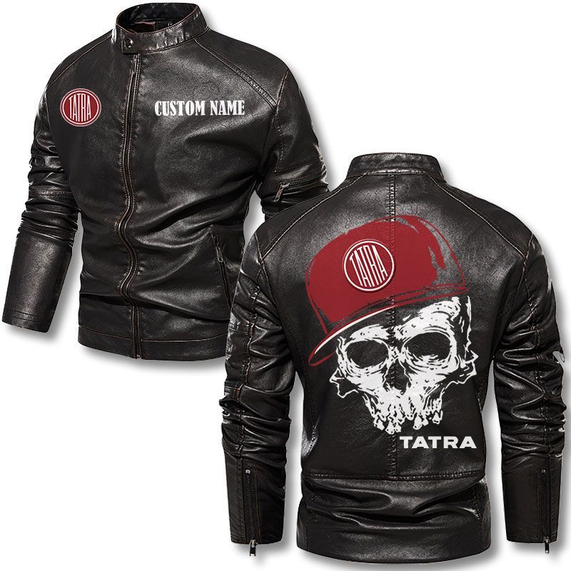 Custom Name Skull Design Tatra Motorcycle Leather Jacket