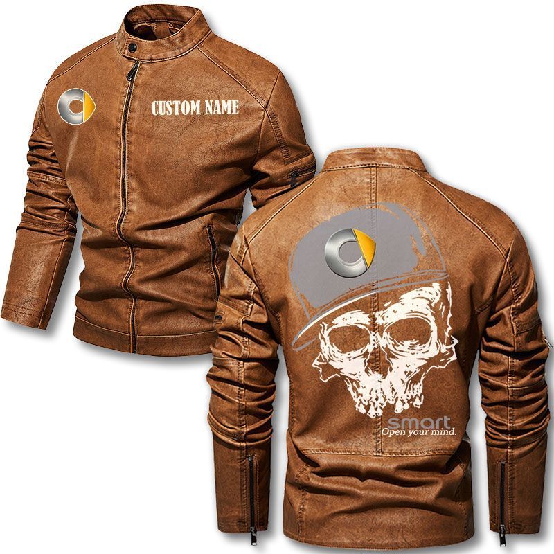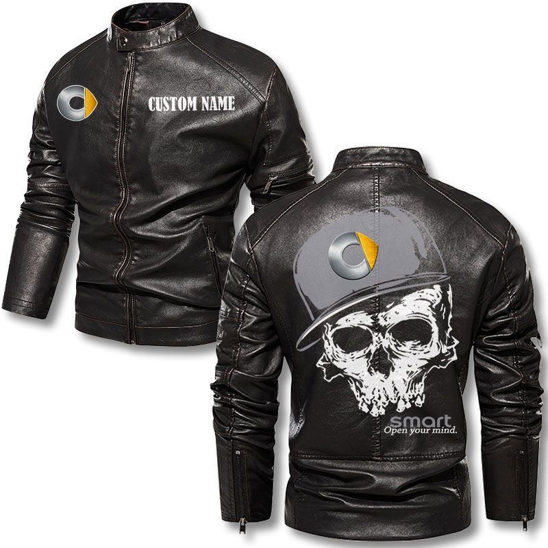 Custom Name Skull Design Smart Motorcycle Leather Jacket