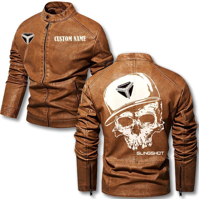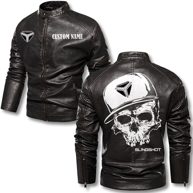 Custom Name Skull Design Slingshort Motorcycle Leather Jacket