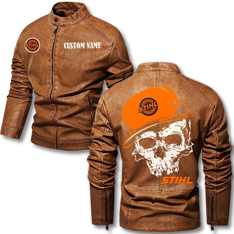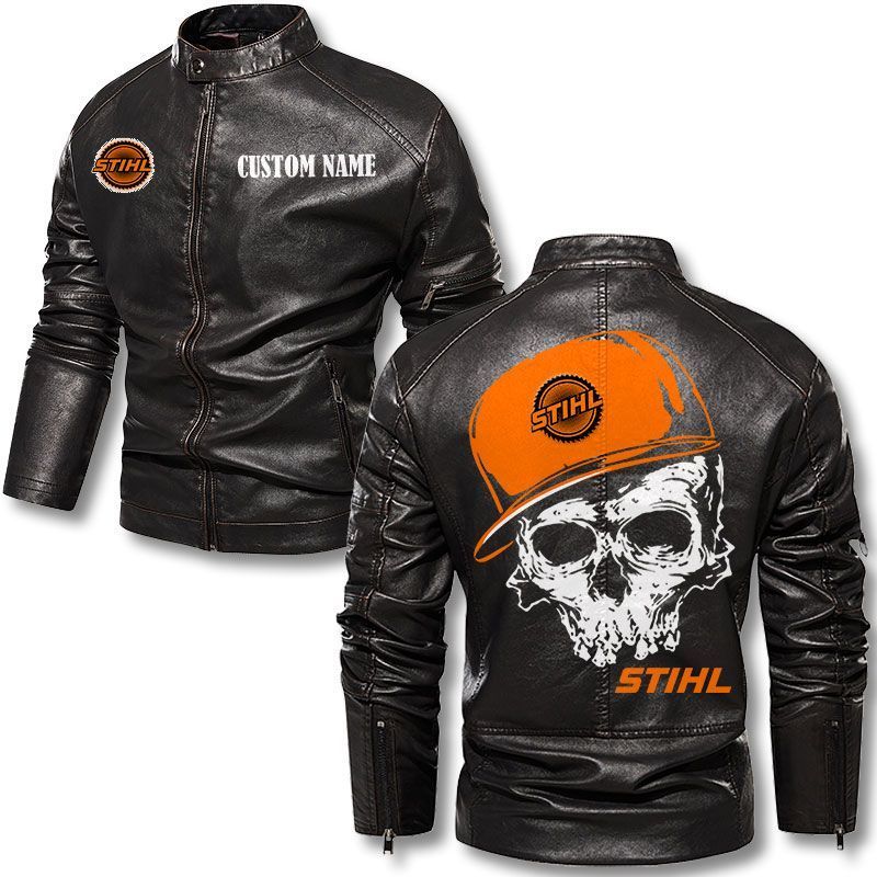 Custom Name Skull Design Stihl Motorcycle Leather Jacket