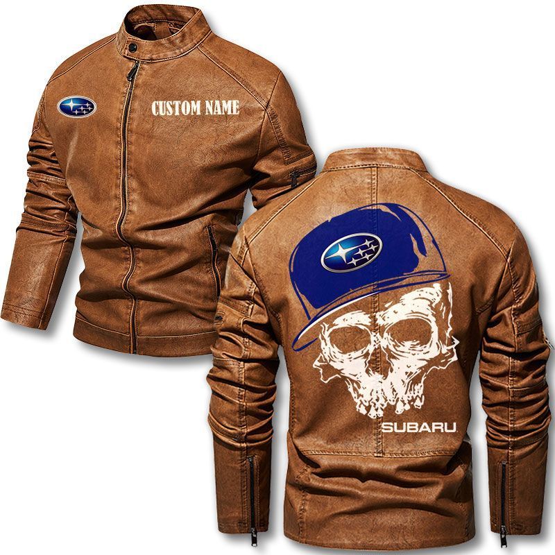 Custom Name Skull Design Subaru Motorcycle Leather Jacket