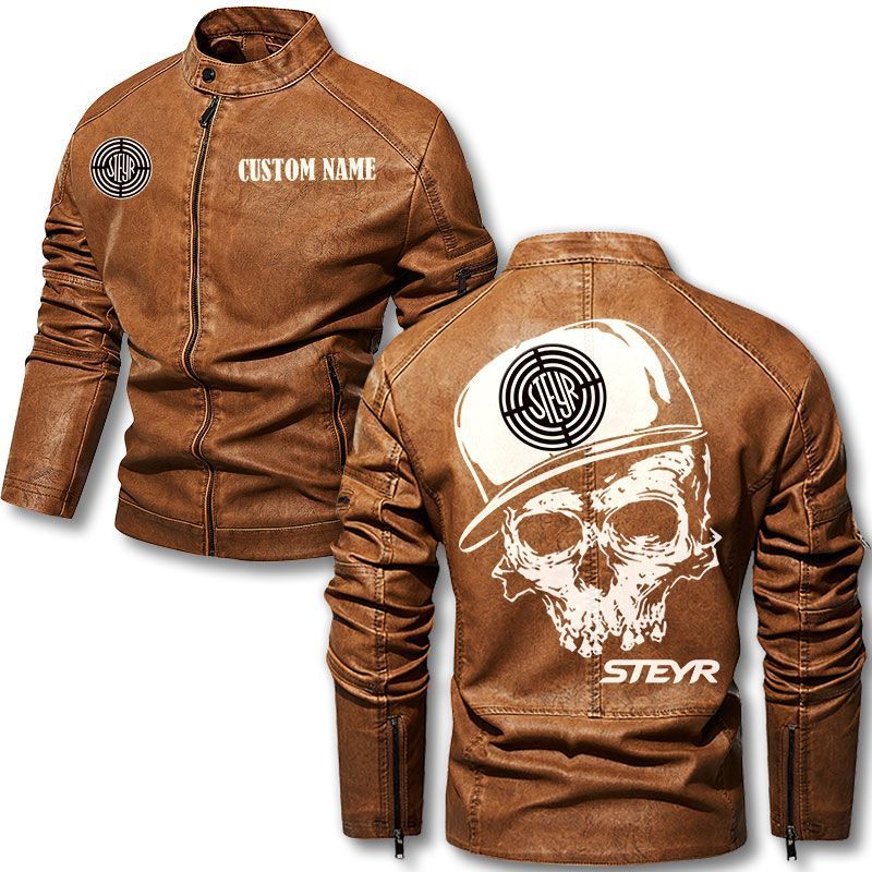 Custom Name Skull Design Steyr Tractor Motorcycle Leather Jacket