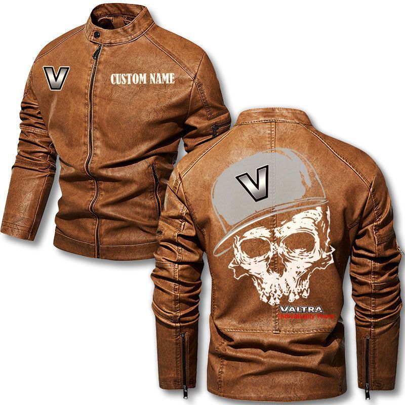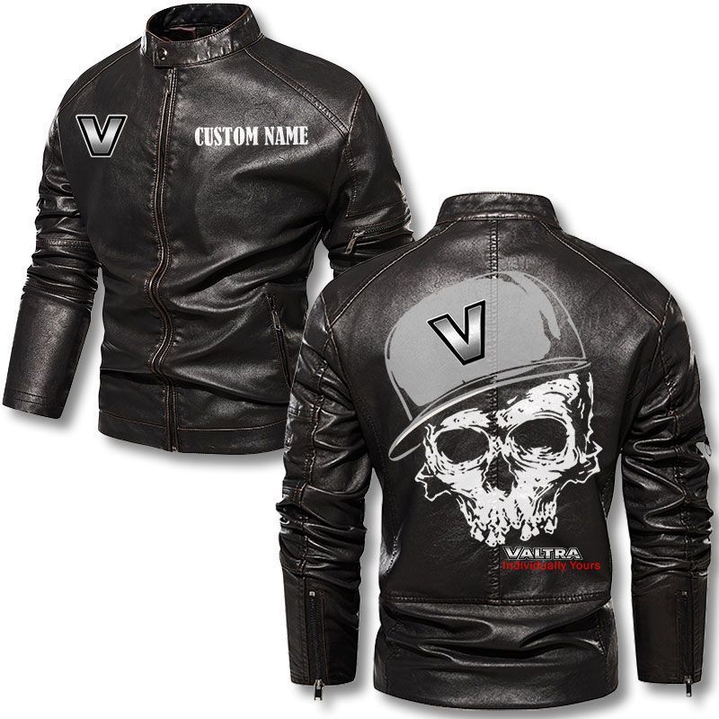 Custom Name Skull Design Valtra Motorcycle Leather Jacket