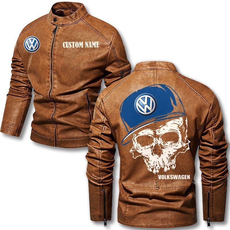 Custom Name Skull Design Volkswagen Group Motorcycle Leather Jacket
