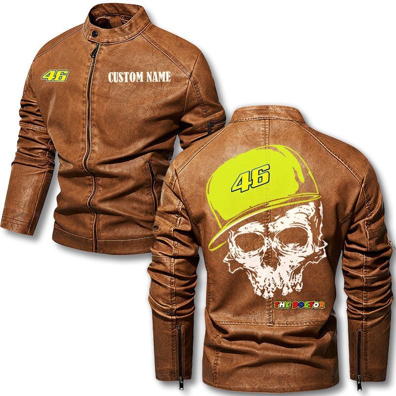 Custom Name Skull Design Valentino Rossi 46 Motorcycle Leather Jacket