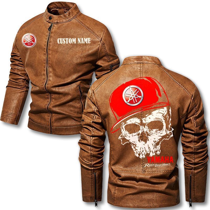 Custom Name Skull Design Yamaha Motorcycle Leather Jacket