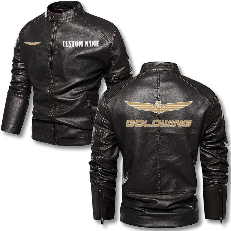 Buick Golden Logo Custom Hooded Leather Jacket Black quantity