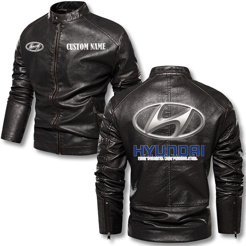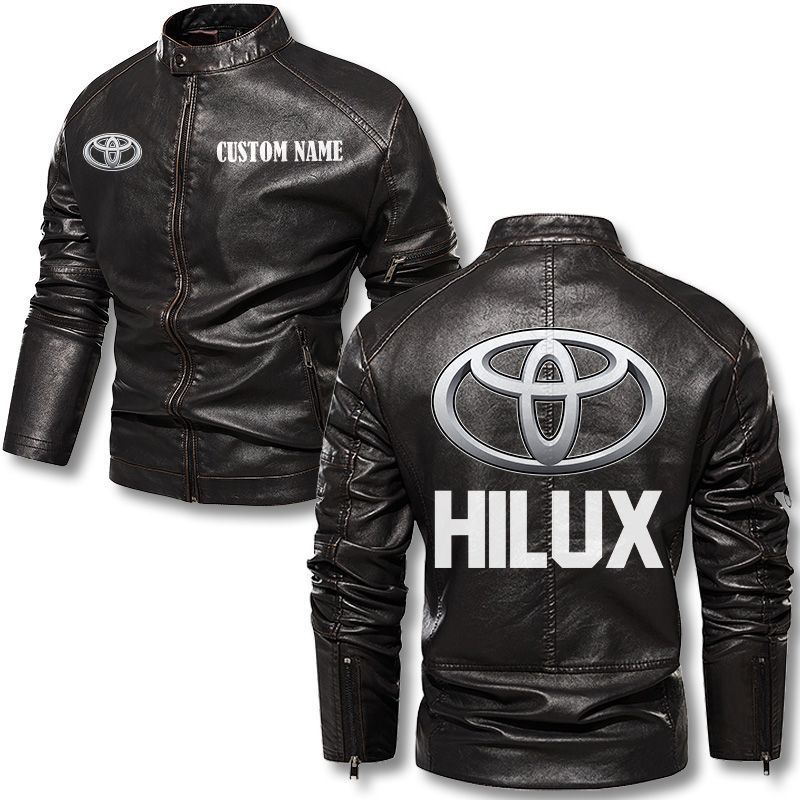 Toyota Hilux Golden Logo Custom Hooded Leather Jacket Black quantity