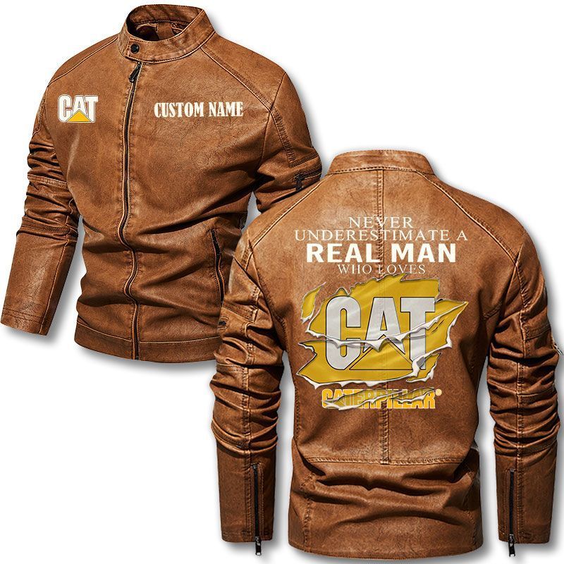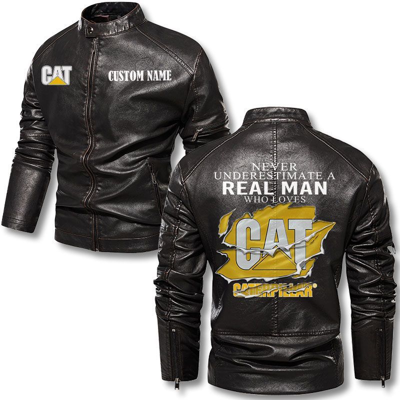 Never Underestimate A Real Man Who Loves Caterpillar Inc Motorcycle Leather Jacket